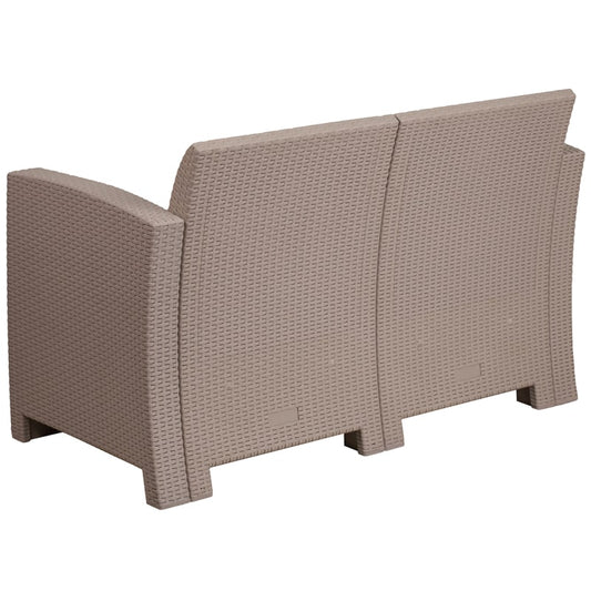 Light Gray Faux Rattan Loveseat with All-Weathe... Light Gray Faux Rattan Loveseat with All-Weather Light Gray Cushions by Flash Furniture