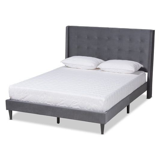 Baxton Studio Serrano Contemporary Glam and Lux... Baxton Studio Serrano Contemporary Glam and Luxe Grey Velvet Fabric Upholstered and Gold Metal Full Size Platform Bed