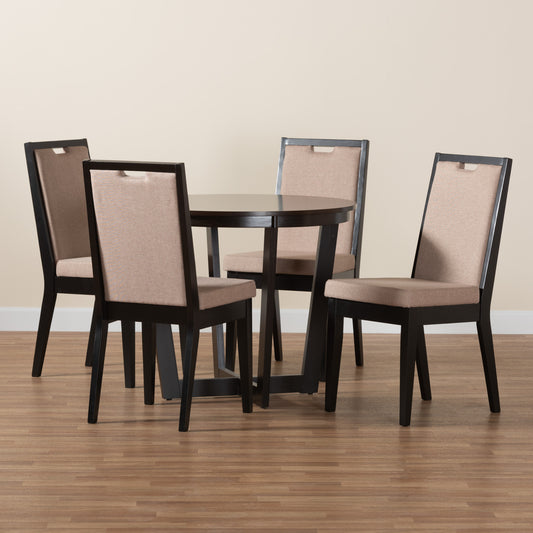 Baxton Studio Ansa Modern Sand Fabric and Dark ... Baxton Studio Ansa Modern Sand Fabric and Dark Brown Finished Wood 5-Piece Dining Set