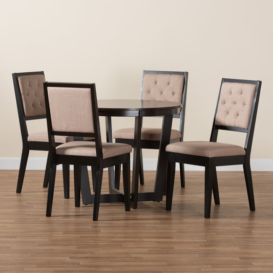 Baxton Studio Velia Modern Sand Fabric and Dark... Baxton Studio Velia Modern Sand Fabric and Dark Brown Finished Wood 5-Piece Dining Set