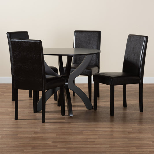 Baxton Studio Rosi Modern Espresso Brown Faux L... Baxton Studio Rosi Modern Espresso Brown Faux Leather and Wood 5-Piece Dining Set