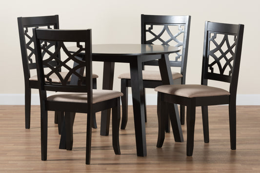 Baxton Studio Nia Modern Beige Fabric and Dark ... Baxton Studio Nia Modern Beige Fabric and Dark Brown Finished Wood 5-Piece Dining Set
