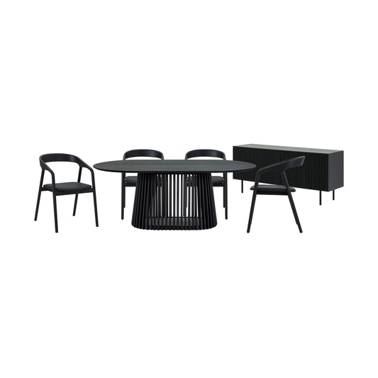 Pasadena Erie 6 Piece Oval Dining Set with Buff... Pasadena Erie 6 Piece Oval Dining Set with Buffet in Black Oak Finish with Black Paper Cord Chairs By Armen Living