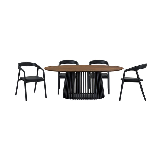 Pasadena Apache 5 Piece Oval Dining Set in Waln... Pasadena Apache 5 Piece Oval Dining Set in Walnut and Black Oak Finish with Faux Leather By Armen Living