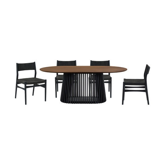 Pasadena Erie 5 Piece Oval Dining Set in Walnut... Pasadena Erie 5 Piece Oval Dining Set in Walnut and Black Finish with Paper Cord Chairs By Armen Living