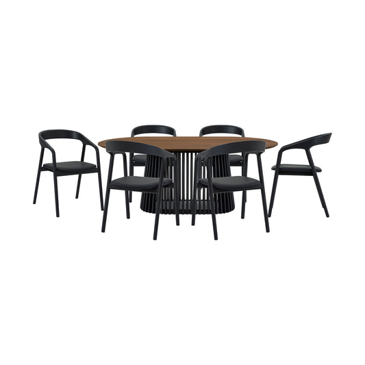 Pasadena Apache 7 Piece Oval Dining Set in Waln... Pasadena Apache 7 Piece Oval Dining Set in Walnut and Black Oak Finish with Faux Leather By Armen Living