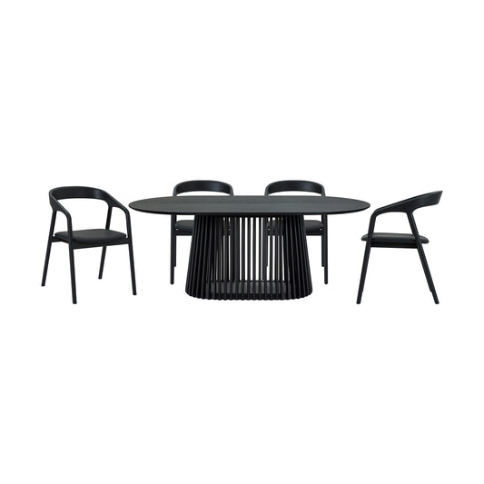 Pasadena Apache 5 Piece Oval Dining Set in Blac... Pasadena Apache 5 Piece Oval Dining Set in Black Oak Finish with Black Faux Leather By Armen Living