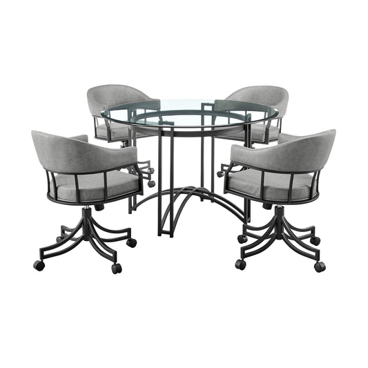Tibet 5 Piece Dining Set with Round Glass Table... Tibet 5 Piece Dining Set with Round Glass Tabletop and Faux Leather Rolling Chairs By Armen Living