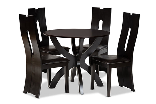 Baxton Studio Marie Modern and Contemporary Dar... Baxton Studio Marie Modern and Contemporary Dark Brown Faux Leather Upholstered and Dark brown Finished Wood 5-Piece Dining Set