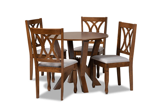 Baxton Studio Ariane Modern and Contemporary Gr... Baxton Studio Ariane Modern and Contemporary Grey Fabric Upholstered and Walnut Brown Finished Wood 5-Piece Dining Set