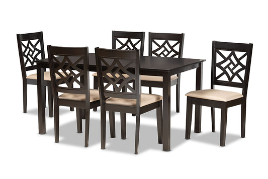 Baxton Studio Ramiro Modern and Contemporary Sa... Baxton Studio Ramiro Modern and Contemporary Sand Fabric Upholstered and Dark Brown Finished Wood 7-Piece Dining Set
