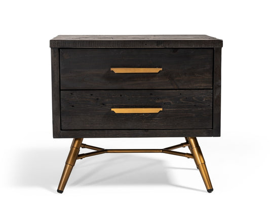 Modern Dark Brown Recycled Pine Nightstand With... Modern Dark Brown Recycled Pine Nightstand With Antique Fittings By Homeroots