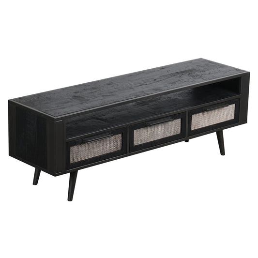 Rustic Black and Rattan TV Stand with Three Dra... Rustic Black and Rattan TV Stand with Three Drawers By Homeroots