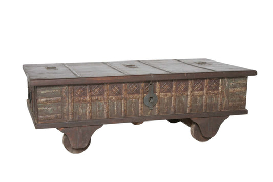 Brown Wheel Antique Coffee Table By Homeroots Brown Wheel Antique Coffee Table By Homeroots