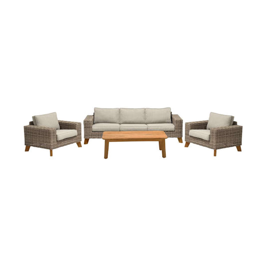 Bahamas Outdoor 4 Piece Wicker & Teak Sofa Seat... Bahamas Outdoor 4 Piece Wicker & Teak Sofa Seating Set with Beige Olefin By Armen Living