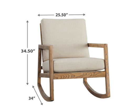 Fabric Accent Rocking Chair with Box Seat and B... Fabric Accent Rocking Chair with Box Seat and Back Cushions, Beige and Brown By Benzara