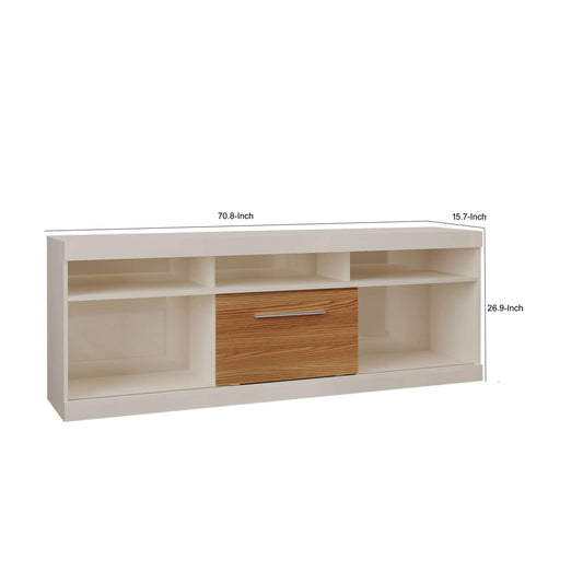 71 Inch Tv Stand With Open Compartments And Sli... 71 Inch Tv Stand With Open Compartments And Sliding Door, Off White And Oak By Benzara