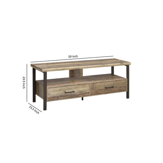 59 Inch Wooden Tv Console With 2 Storage Drawer... 59 Inch Wooden Tv Console With 2 Storage Drawers And Open Shelf, Brown By Benzara