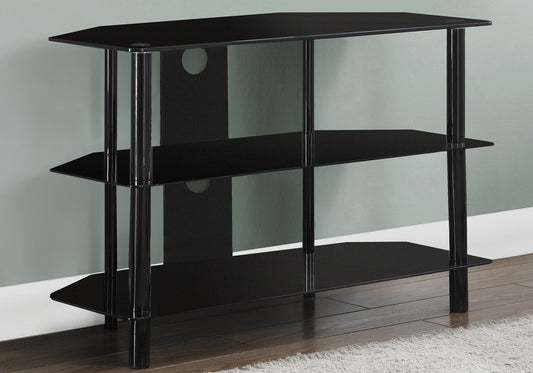 Black Tempered Glass Metal TV Stand By Homeroots Black Tempered Glass Metal TV Stand By Homeroots