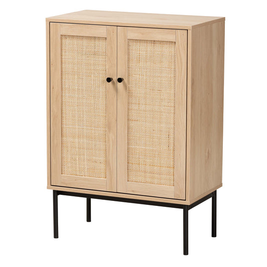 Baxton Studio Sherwin Mid-Century Modern Light ... Baxton Studio Sherwin Mid-Century Modern Light Brown and Black 2-Door Storage Cabinet with Woven Rattan Accent