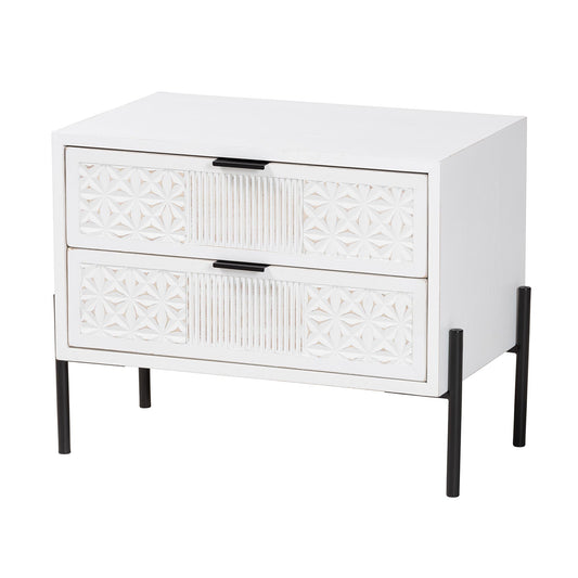 Baxton Studio Merryn Mid-Century Transitional D... Baxton Studio Merryn Mid-Century Transitional Distressed White Finished Wood and Black Metal 2-Drawer Storage Cabinet