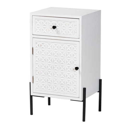 Baxton Studio Nefeli Mid-Century Transitional W... Baxton Studio Nefeli Mid-Century Transitional White Finished Wood and Black Metal 1-Drawer Storage Cabinet