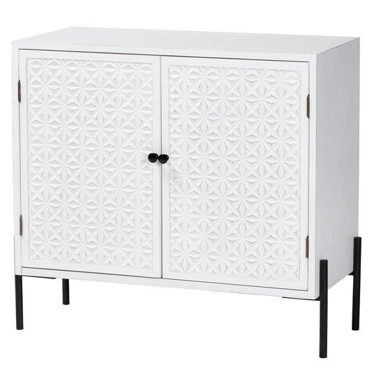 Baxton Studio Nefeli Mid-Century Transitional W... Baxton Studio Nefeli Mid-Century Transitional White Finished Wood and Black Metal 2-Door Storage Cabinet