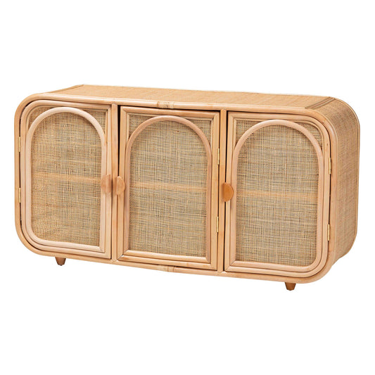 Baxton Studio bali & pari Evania Bohemian Natur... Baxton Studio bali & pari Evania Bohemian Natural Rattan 3-Door Storage Cabinet
