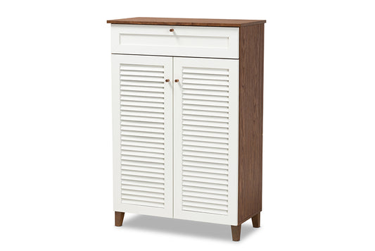 Baxton Studio Meike Mid-Century Modern Two-Tone... Baxton Studio Meike Mid-Century Modern Two-Tone Walnut Brown and White Finished Wood 2-Door Shoe Cabinet