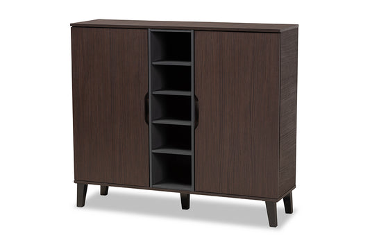 Baxton Studio Idina Mid-Century Modern Two-Tone... Baxton Studio Idina Mid-Century Modern Two-Tone Dark Brown and Grey Finished Wood 2-Door Shoe Cabinet