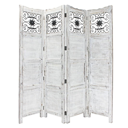 Gray Wash 4 Panel with Scroll Work Room Divider... Gray Wash 4 Panel with Scroll Work Room Divider Screen By Homeroots