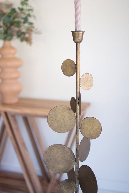 Antique Brass Candle Holders With Round Discs D... Antique Brass Candle Holders With Round Discs Detail Set Of 2 By Kalalou