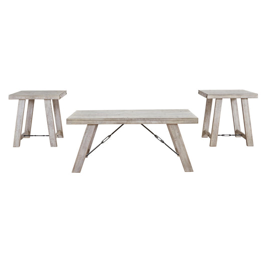 Wooden Table Set with Canted Legs and Tension B... Wooden Table Set with Canted Legs and Tension Bars, Washed White By Benzara