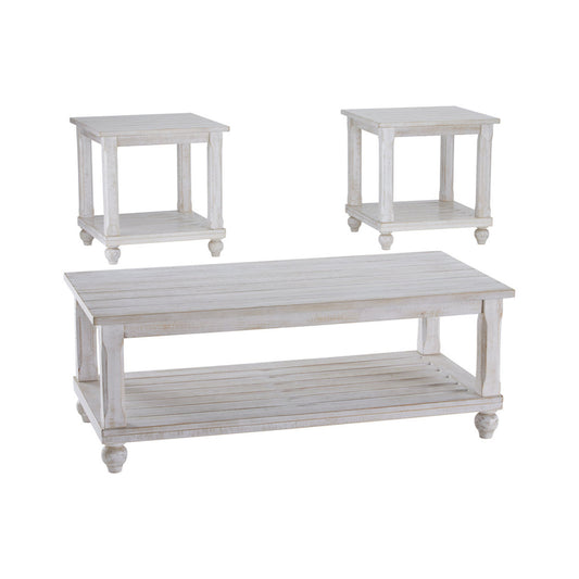 Plank Style Wooden Table Set with Slatted Lower... Plank Style Wooden Table Set with Slatted Lower Shelf and Bun Feet, Set of Three, White By Benzara