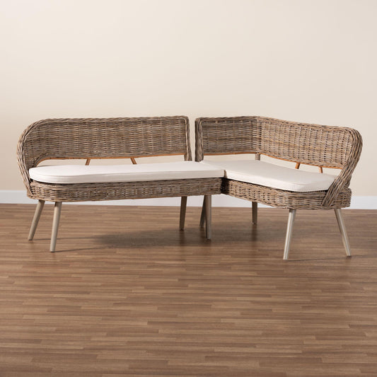 Baxton Studio bali & pari Raisa Modern Bohemian... Baxton Studio bali & pari Raisa Modern Bohemian Natural Kubu Rattan and Grey Acacia Wood 2-Piece Dining Nook Banquette Set