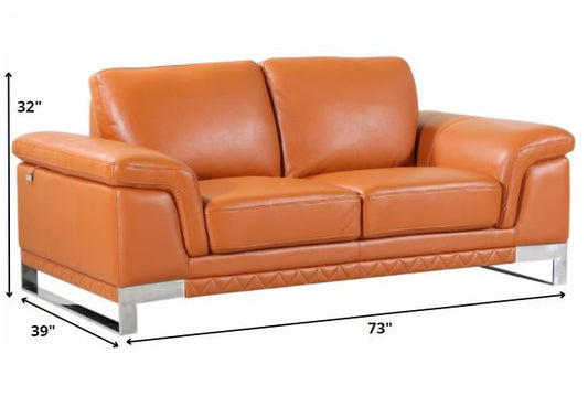 96" Lovely Camel Leather Sofa Set By Homeroots 96" Lovely Camel Leather Sofa Set By Homeroots