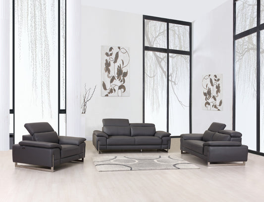 93" Tasteful Dark Grey Leather Sofa Set By Home... 93" Tasteful Dark Grey Leather Sofa Set By Homeroots