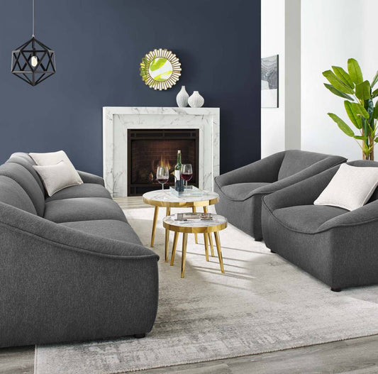 Baxton Studio Sorrento Mid-century Retro Modern... Baxton Studio Sorrento Mid-century Retro Modern Grey Fabric Upholstered Wooden 3 Piece Living room Set