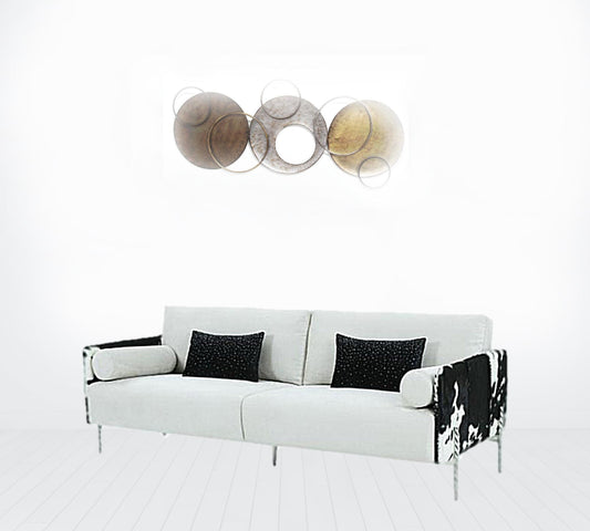 89" White Faux Cowhide and Silver Sofa By Homer... 89" White Faux Cowhide and Silver Sofa By Homeroots