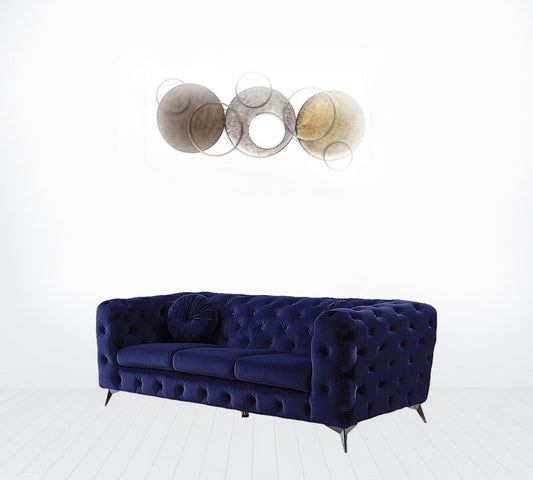 90" Blue Velvet And Black Sofa By Homeroots 90" Blue Velvet And Black Sofa By Homeroots