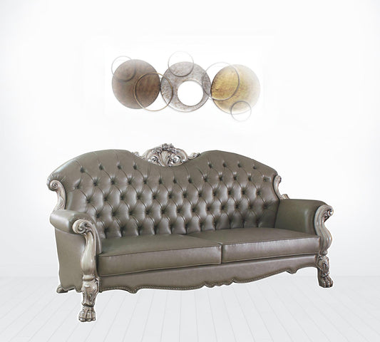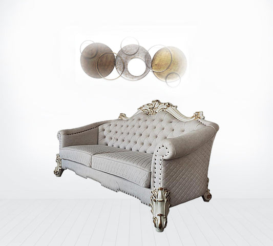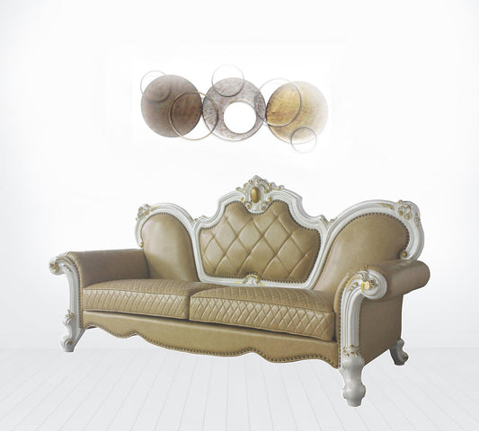 90" Beige Italian Leather And Gold Sofa By Home... 90" Beige Italian Leather And Gold Sofa By Homeroots