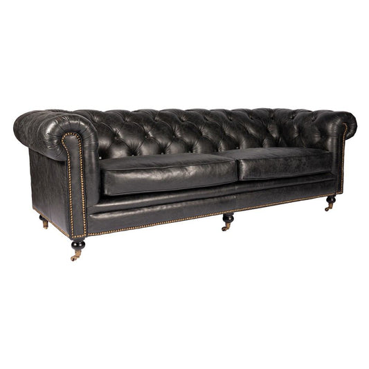 98" Brown Top Grain Leather And Black Sofa By H... 98" Brown Top Grain Leather And Black Sofa By Homeroots