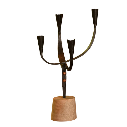 Cajon Double Arc Taper Holder, Iron & Wood - Bl... Cajon Double Arc Taper Holder, Iron & Wood - Black By HomArt