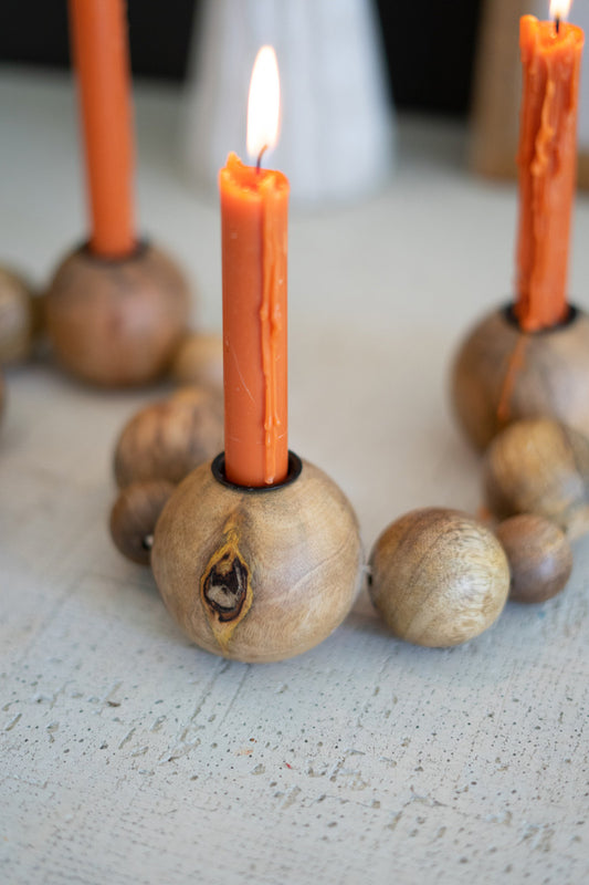 Wooden Spheres Strung Taper Holders By Kalalou Wooden Spheres Strung Taper Holders By Kalalou