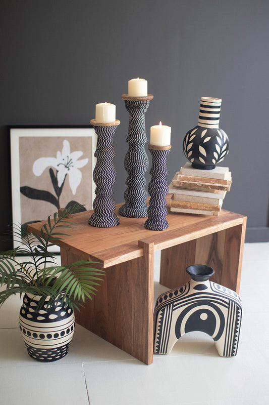 Set 3 Wooden Candle Holders With Black & White ... Set 3 Wooden Candle Holders With Black & White String By Kalalou