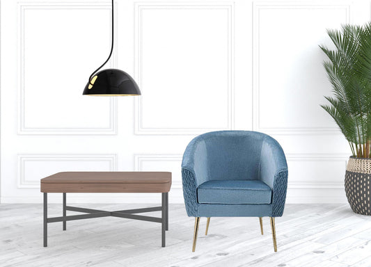 50" Blue Tufted Velvet And Gold Solid Color Lou... 50" Blue Tufted Velvet And Gold Solid Color Lounge Chair By Homeroots