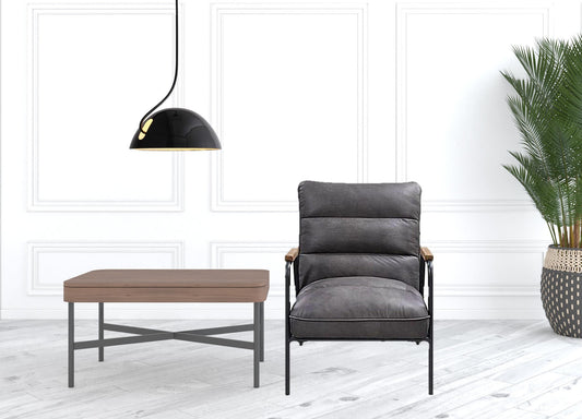 28" Gray Black Top Grain Leather And Steel Soli... 28" Gray Black Top Grain Leather And Steel Solid Color Arm Chair By Homeroots