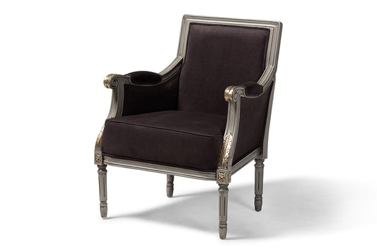 Baxton Studio Georgette Classic and Traditional... Baxton Studio Georgette Classic and Traditional French Inspired Brown Velvet Upholstered Grey Finished Armchair with Goldleaf Detailing
