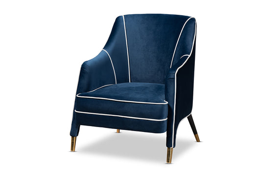 Baxton Studio Ainslie Glam and Luxe Navy Blue V... Baxton Studio Ainslie Glam and Luxe Navy Blue Velvet Fabric Upholstered Gold Finished Armchair