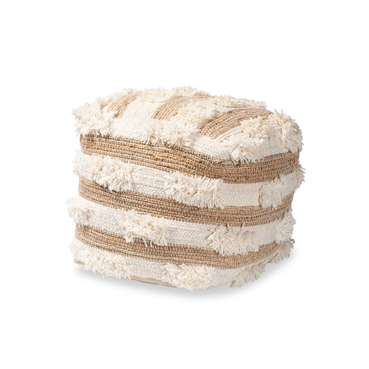 Baxton Studio Basque Modern and Contemporary Mo... Baxton Studio Basque Modern and Contemporary Moroccan Inspired Natural and Ivory Handwoven Wool Blend Pouf Ottoman